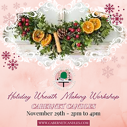Join us for a hands-on, creative experience where you’ll design and craft your own beautiful seasonal wreath! Guided by our instructor, you’ll learn how to arrange greenery, dried florals, and decorative accents into a stunning piece that reflects your personal style. Includes wreath, assorted decor, air freshener pouring, warms drinks, and assorted holiday snacks. November 29th - 2pm to 4pm $45/pp